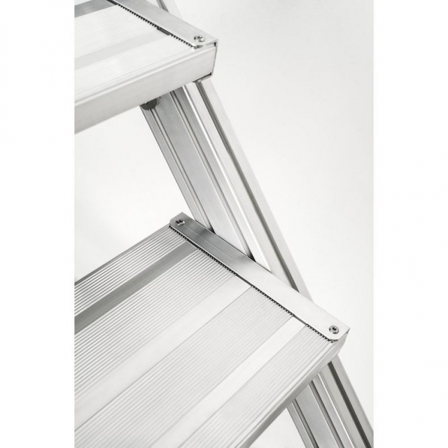 - В стандартной комплектации ступени и платформа имеют покрытие из рифленого алюминия (R10). Прочие варианты: стальная решетка (R12) и перфорированный стальной лист (R13) для повышенной защиты от скольжения.